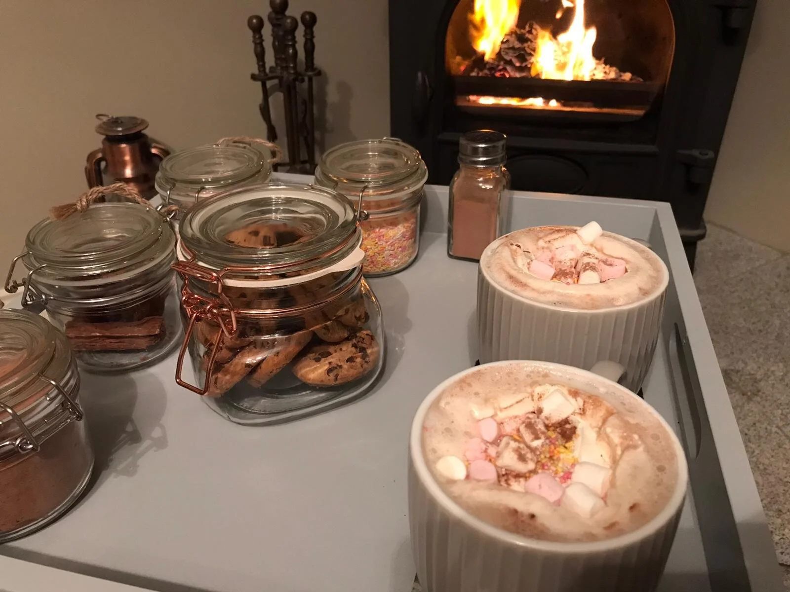 £5 per person. Includes hot chocolate powder, various toppings like marshmallows and sprinkles, spoons & mugs.
